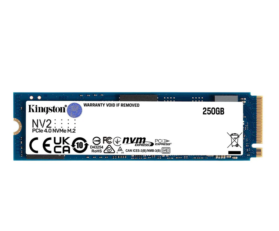 Kingston NV2 250GB NVMe M.2 SSD — PCIe 4.0 performance in a compact M.2 2280 form factor. Up to 3,000/1,300 MB/s (250GB). 3‑year warranty.